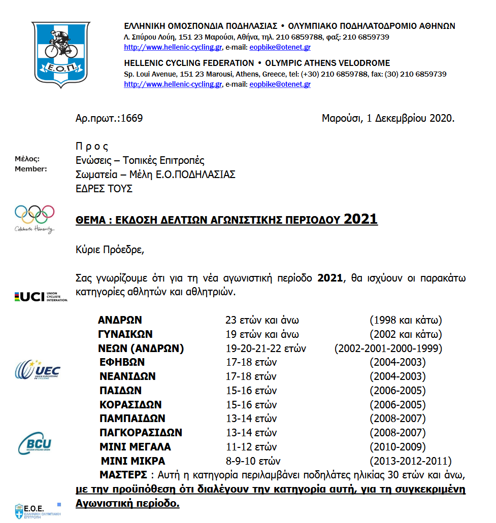 ΑΓΩΝΙΣΤΙΚΕΣ ΚΑΤΗΓΟΡΙΕΣ