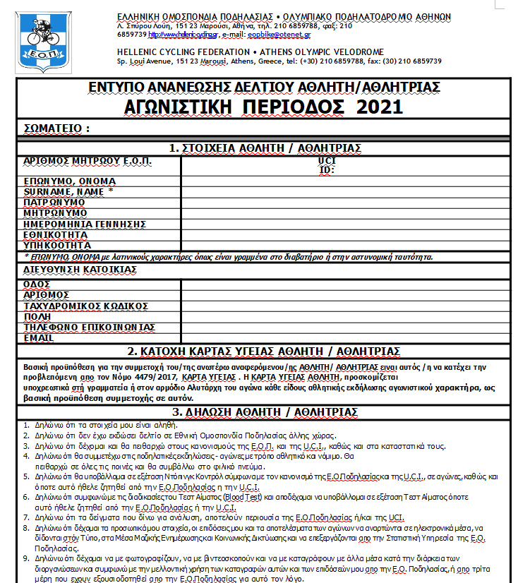 ΕΝΤΥΠΟ ΓΙΑ ΑΝΑΝΕΩΣΗ ΔΕΛΤΙΟΥ