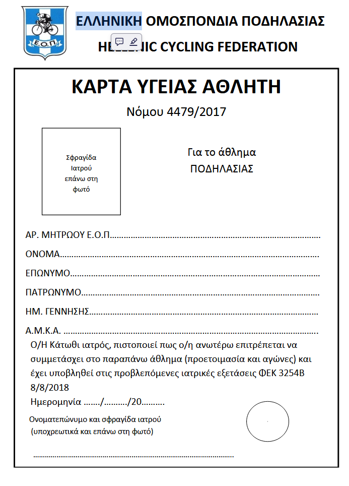 ΕΝΤΥΠΟ ΓΙΑ ΚΑΡΤΑ ΥΓΕΙΑΣ
